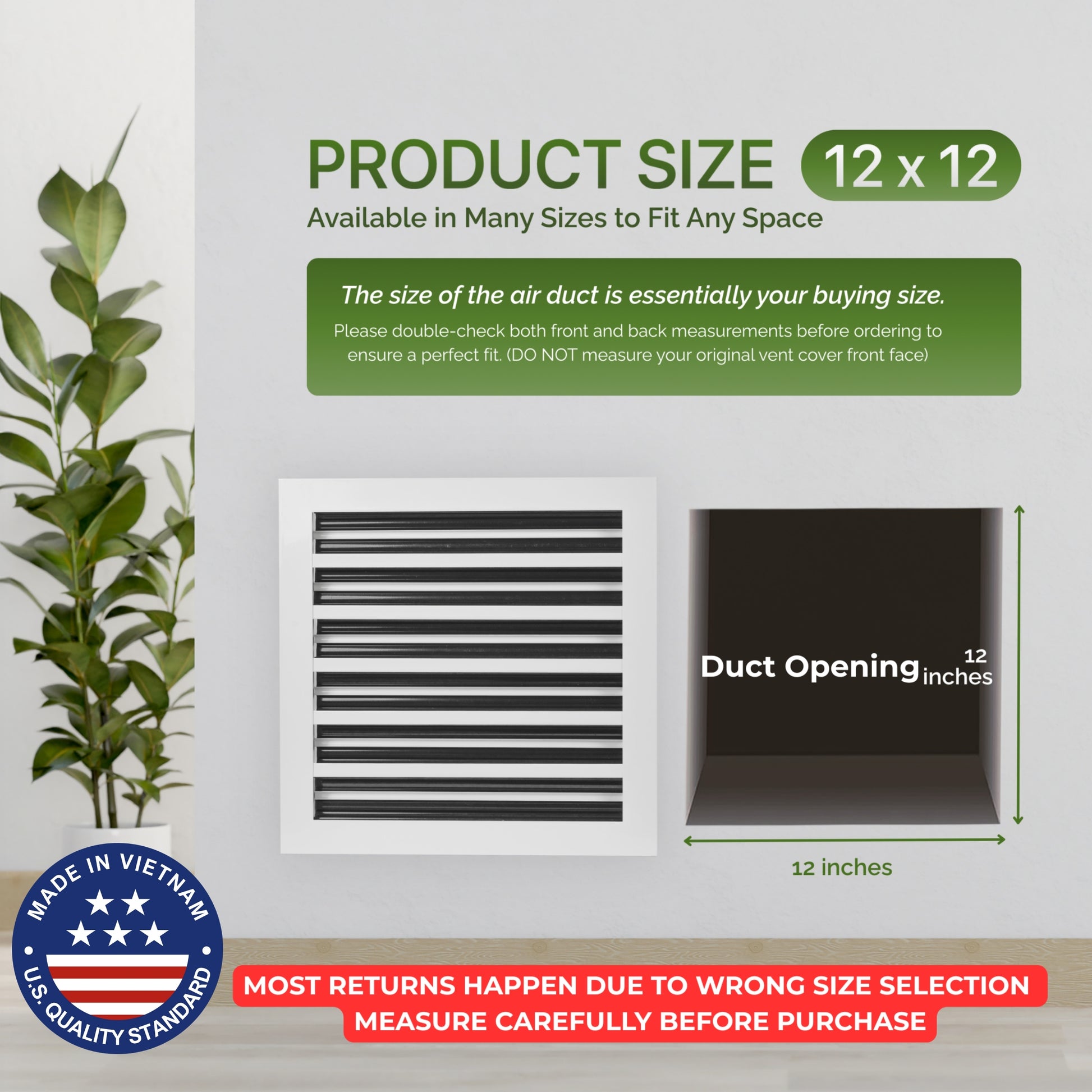 - ⚠️ CHECK SIZE BEFORE PURCHASE – Listed size 12"x12" = fits duct opening 12"x12". Neck size: 11-13/16" x 11-13/16" (± 1/8") – fits inside the duct opening. Face size: 13-3/4" x 13-3/4" (± 1/8") – this is the visible cover on the wall, ceiling or floor. Please measure the duct opening carefully (not the old vent cover’s face size) before ordering. Choosing the wrong size is the #1 reason for returns.