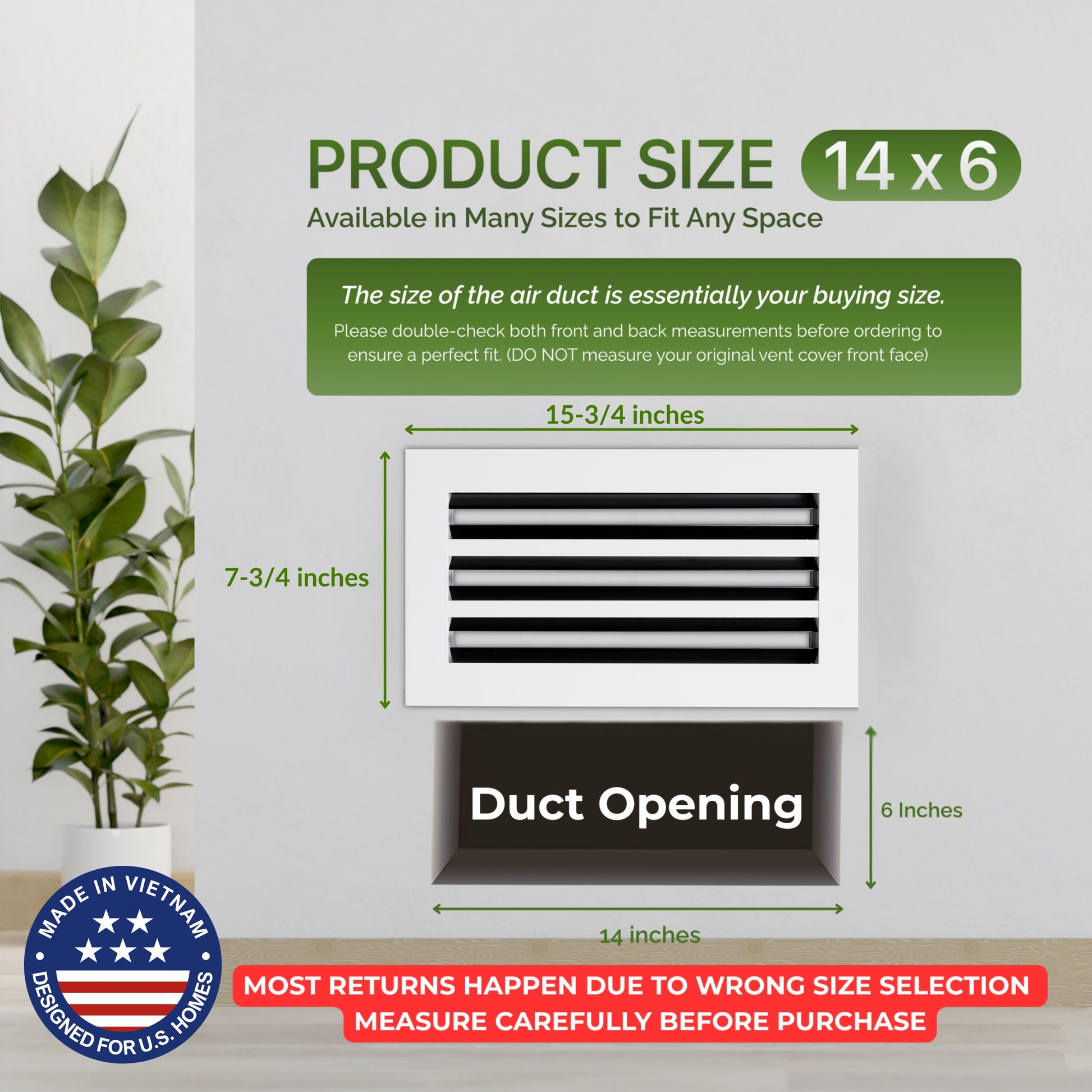 - FITS 6x14 DUCT OPENING: Designed to fit standard 6" x 14" duct openings (not face size). Clear and accurate sizing helps you confidently select the correct vent the first time, reducing the risk of ordering the wrong size and avoiding unnecessary returns.