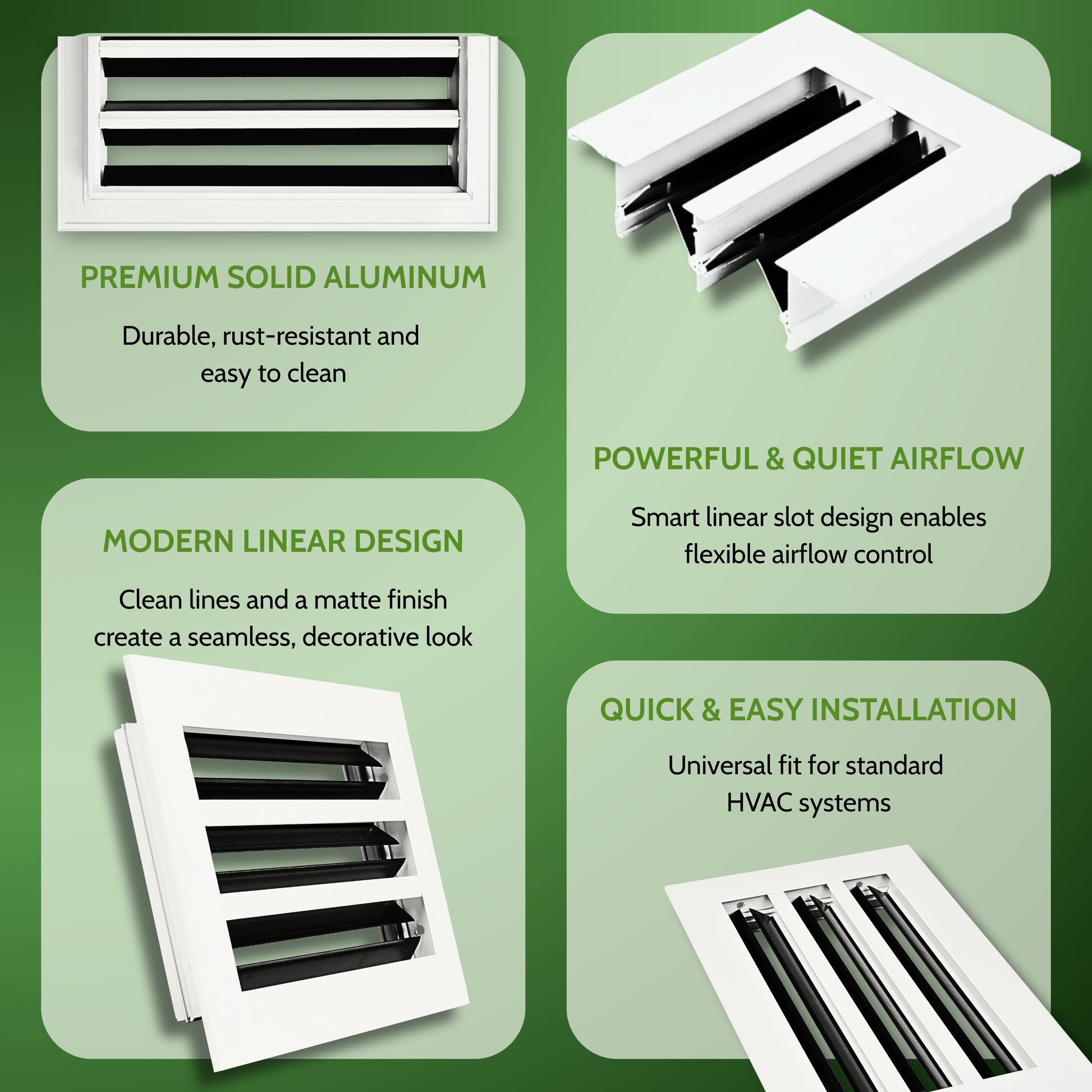 - QUIET AND ADJUSTABLE AIRFLOW CONTROL: Precision-engineered linear blades distribute airflow evenly while minimizing noise. Adjustable airflow direction allows for improved comfort, making it suitable for bedrooms, offices, living rooms, and other quiet indoor spaces.