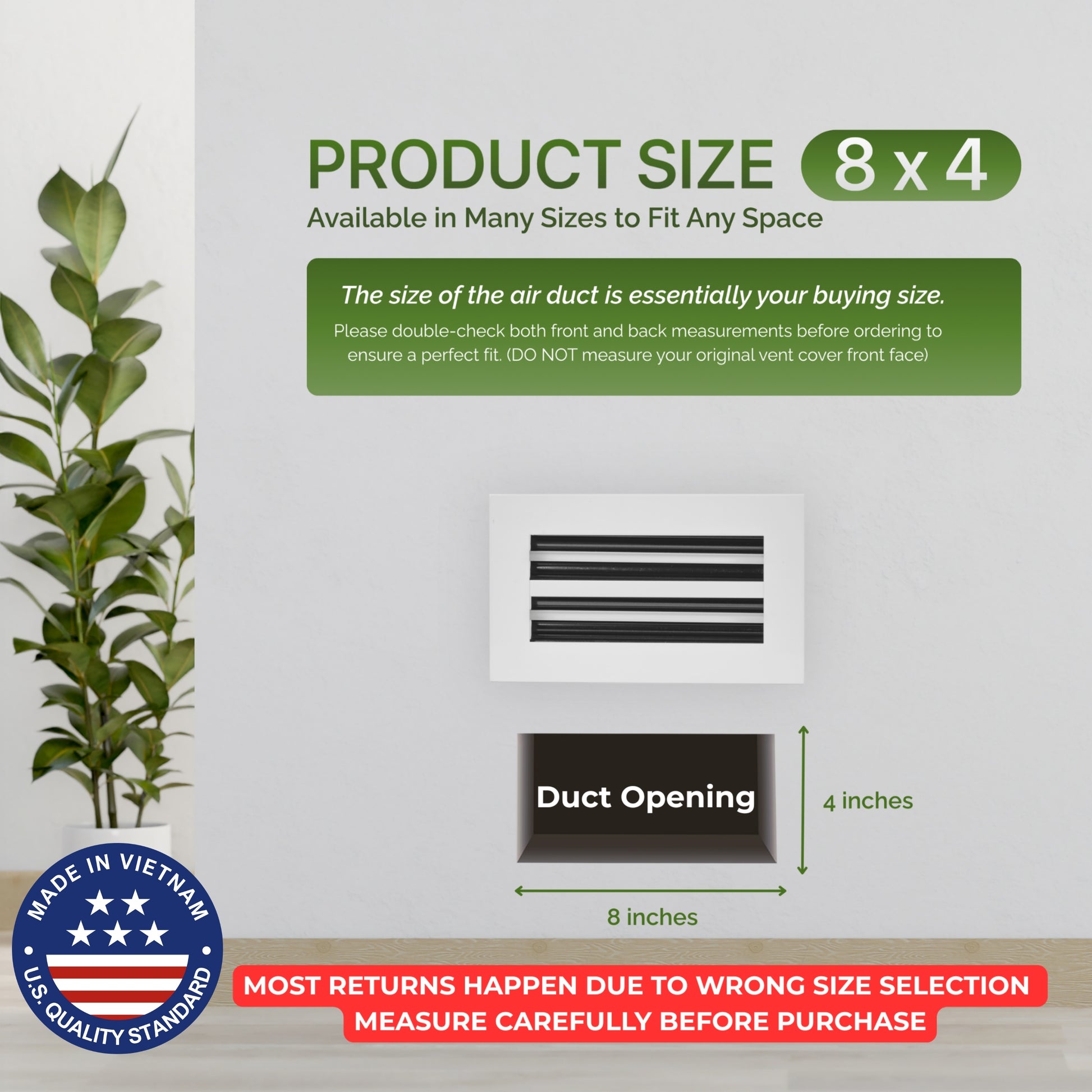 - ⚠️ CHECK SIZE BEFORE PURCHASE – Listed size 8"x4" = fits duct opening 8"x4". Neck size: 7-13/16" x 3-13/16" (± 1/8") – fits inside the duct opening. Face size: 9-3/4" x 5-3/4" (± 1/8") – this is the visible cover on the wall, ceiling or floor. Please measure the duct opening carefully (not the old vent cover’s face size) before ordering. Choosing the wrong size is the #1 reason for returns.